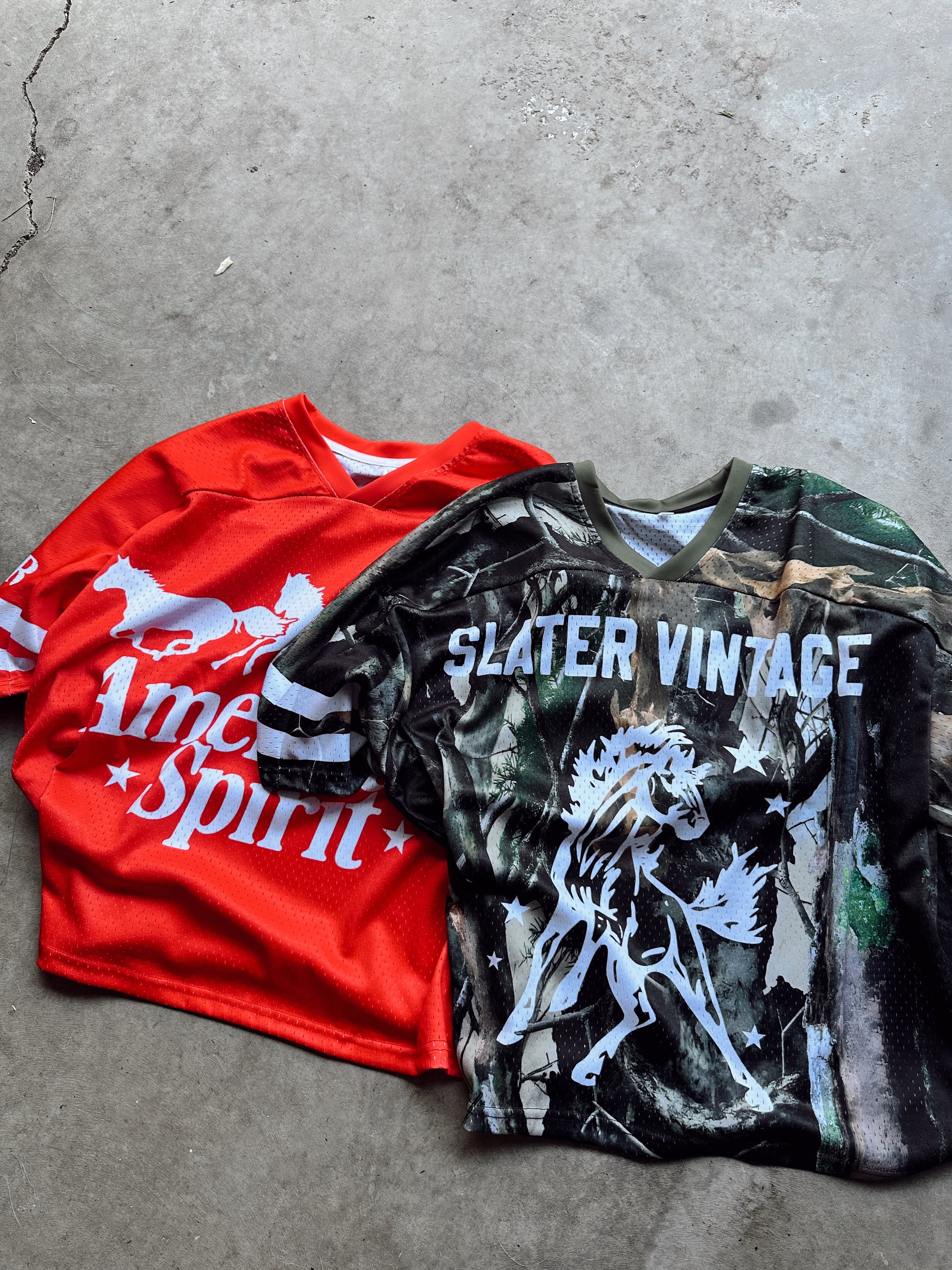 A Slater Vintage exclusive breathable, premium mesh material for a real jersey vibe. Hand drawn graphics adorn the jersey on front, back and sleeves. Oversized, boxy fit with an on trend v-neck for a classic fit and flattering cut. Size up additionally if you want a more exaggerated oversized fit.