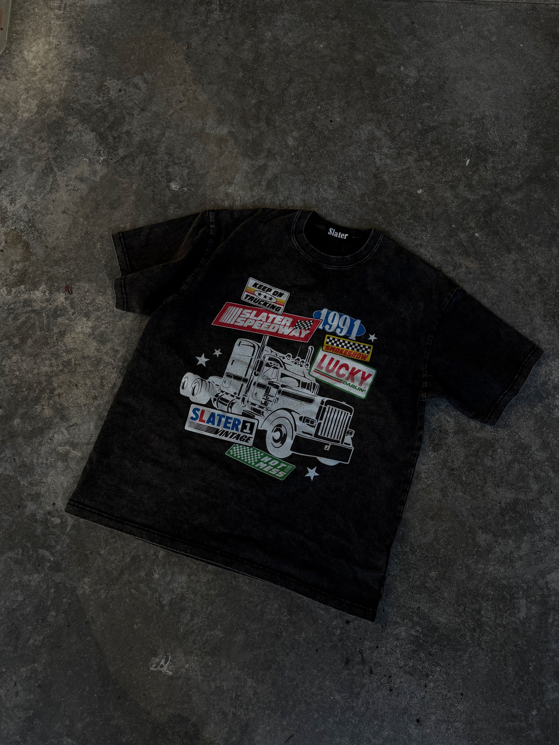 LIMITED EDITION: Keep On Truckin' Acid Wash Tee x Black