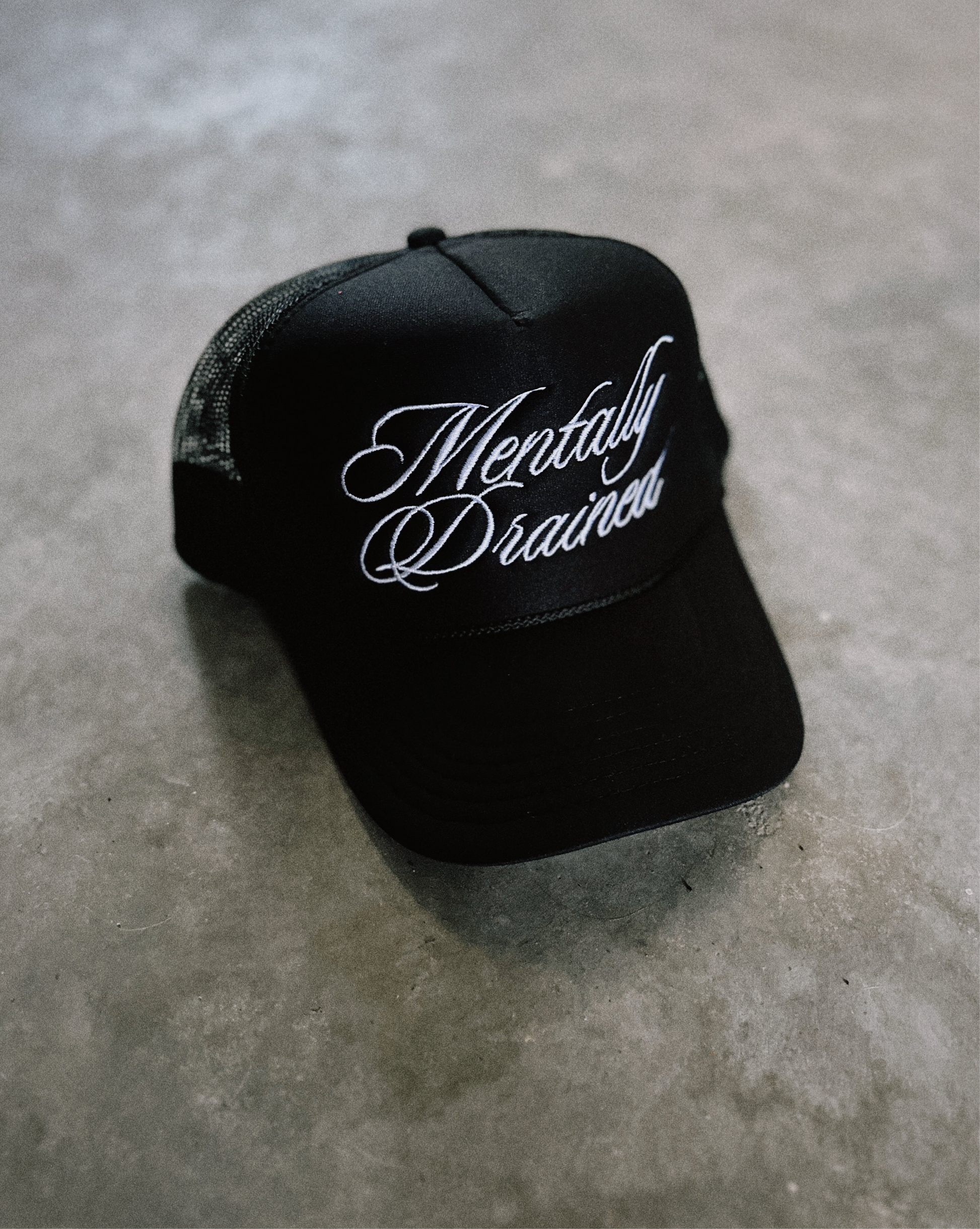 Trucker style with, high profile foam front and mesh back. Graphic embroidered on the front. Black color hat base with rope detail across brim. Adjustable snap back, one size fits all.